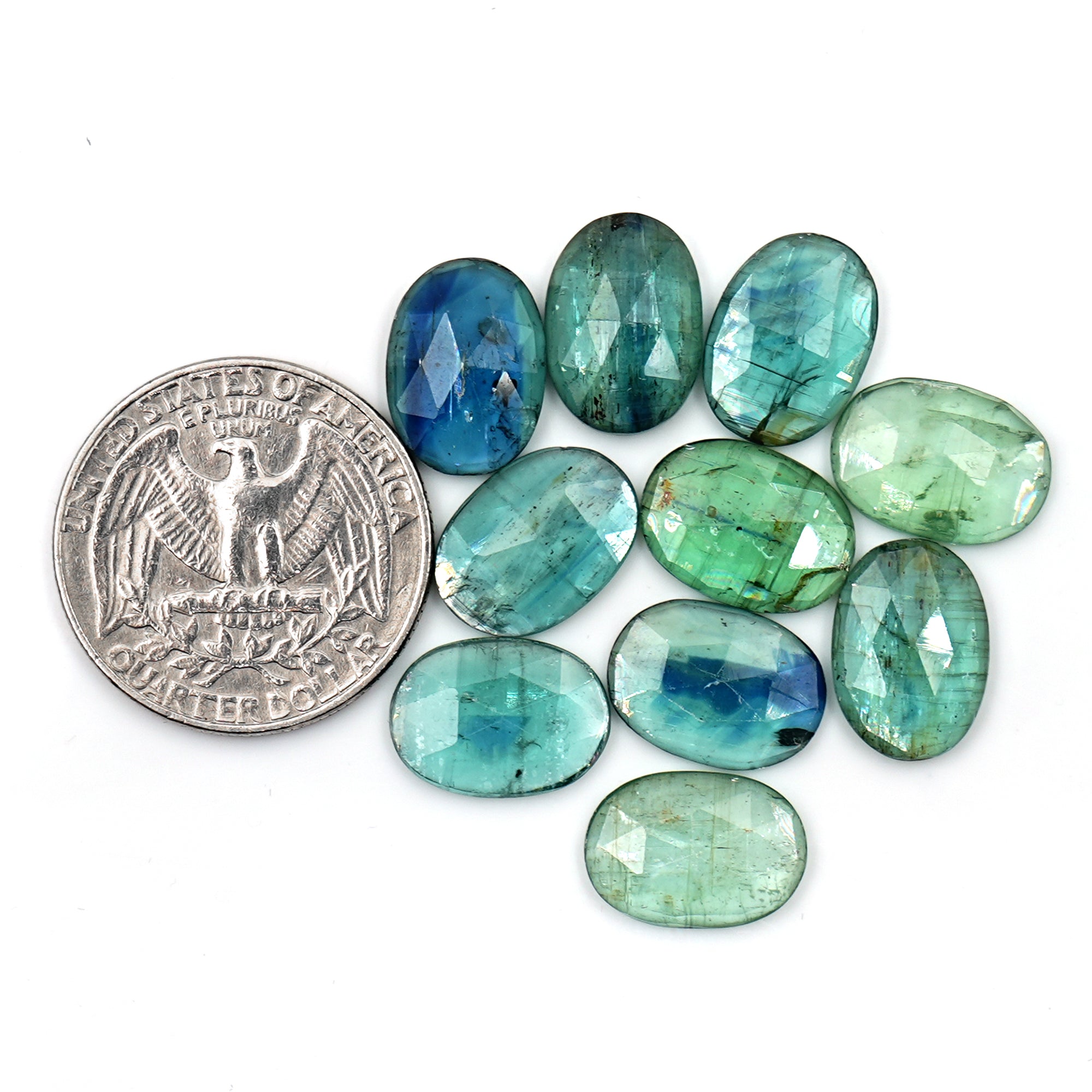 Rose Cut Emerald Green Kyanite | Flat Back Oval Cut Gemstones For Jewelry - 10 Pieces