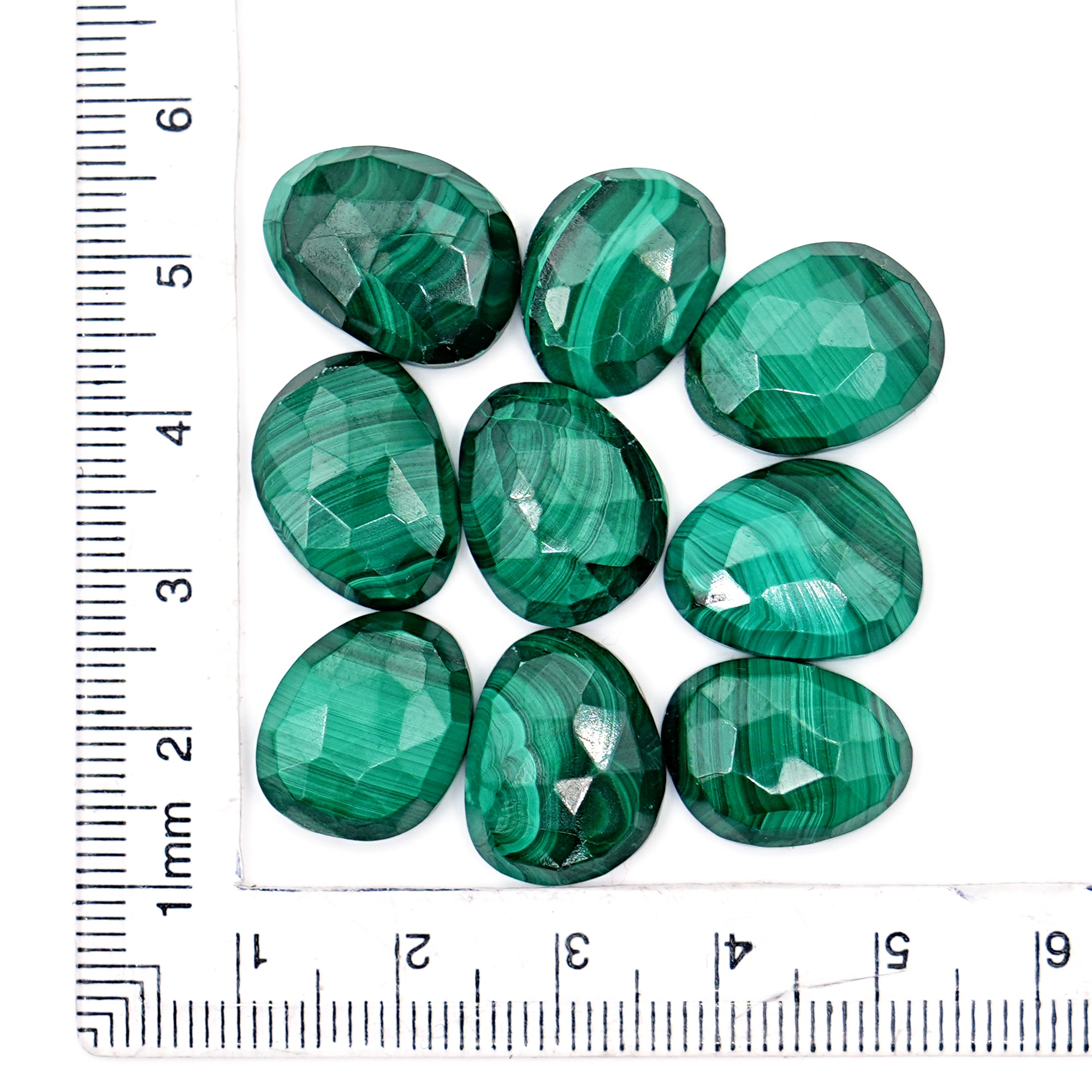 Add mystical charm to your designs with these Natural Malachite Rosecut Cabochons. Each stone boasts beautiful iridescent flashes of blue, green, and gold. Expertly rose-cut for added brilliance, these flat-back cabochons are perfect for bezel setting, wire wrapping.