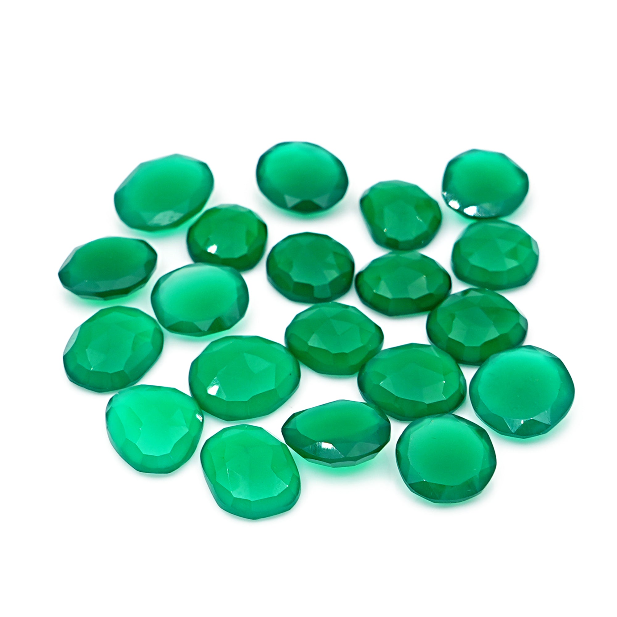 Bold. Sleek. Effortless. These Green Onyx Rose cut cabochons bring timeless sophistication to any jewelry design. Hand-cut in organic freeform shapes, each piece features a reflective rosecut top with a flat back — ideal for both bezel and claw settings.