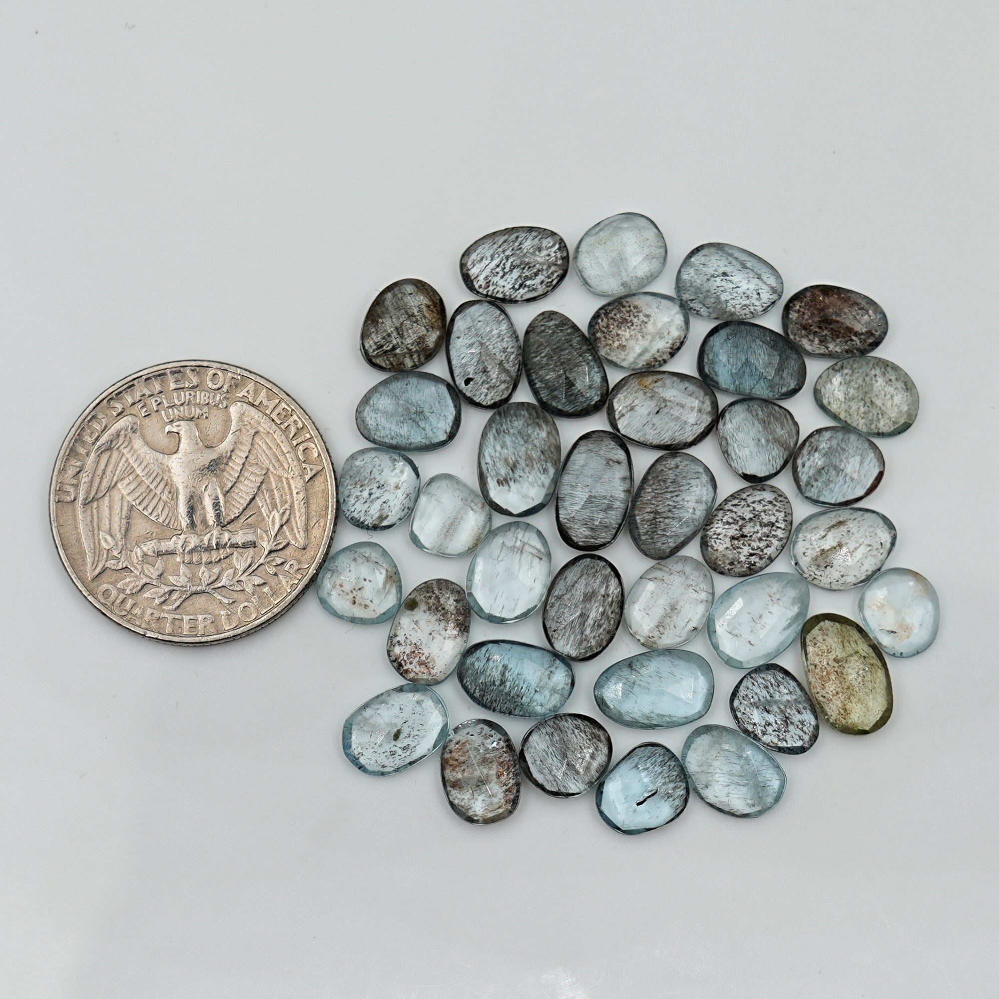 Bring a touch of nature-inspired beauty to your designs with these Moss Aquamarine Rosecut Cabochons. Each stone showcases soft aqua-blue tones intertwined with moss-like inclusions, offering a raw, earthy aesthetic and gentle shimmer from its rosecut surface.
