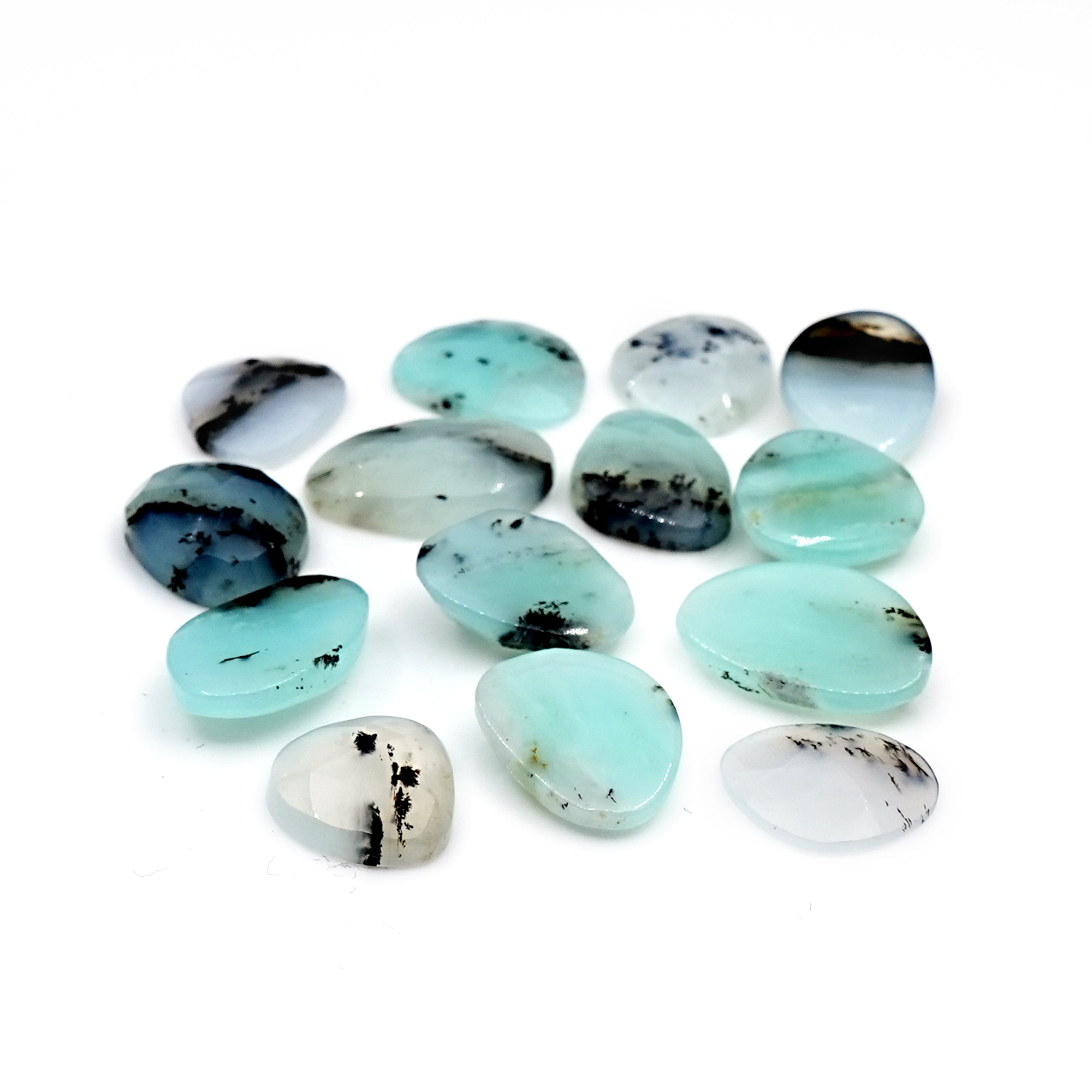 Sourced from the mystical highlands of Peru, these Peruvian Blue Opal Rosecut Cabochons embody serene lagoons and skylit calm. Their soft aqua hues and natural translucency bring a tranquil, airy elegance to any design.