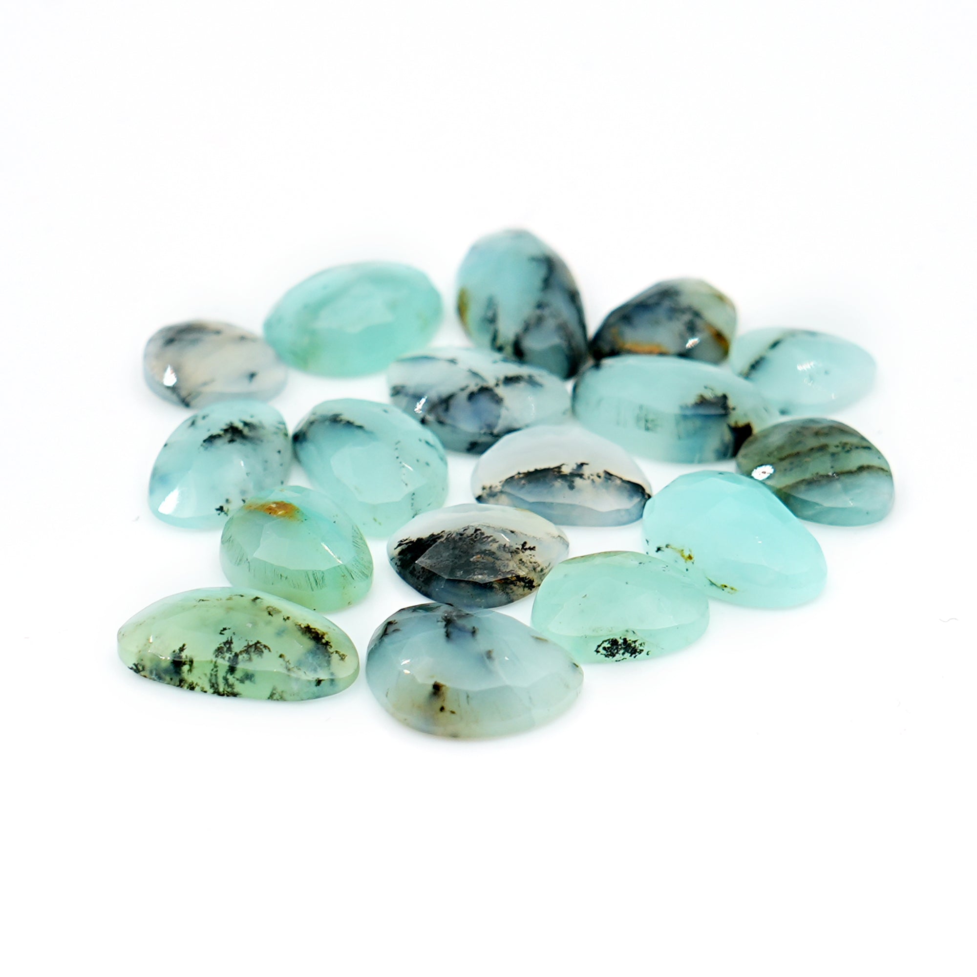 Natural Peruvian Blue Opal Rose Cut Gemstones | Polished Loose Gems for Jewelry Making - 17 Pieces