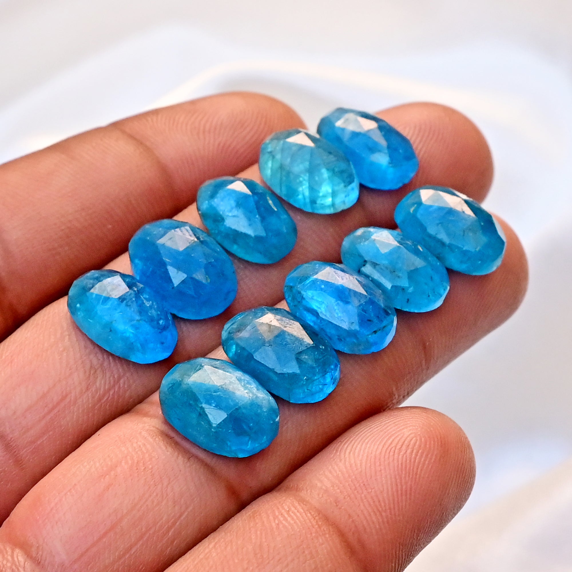 Neon Apatite Doubet Rose Cut Cabochons | Blue Color Gemstone for Jewelry Making - 10 Piece