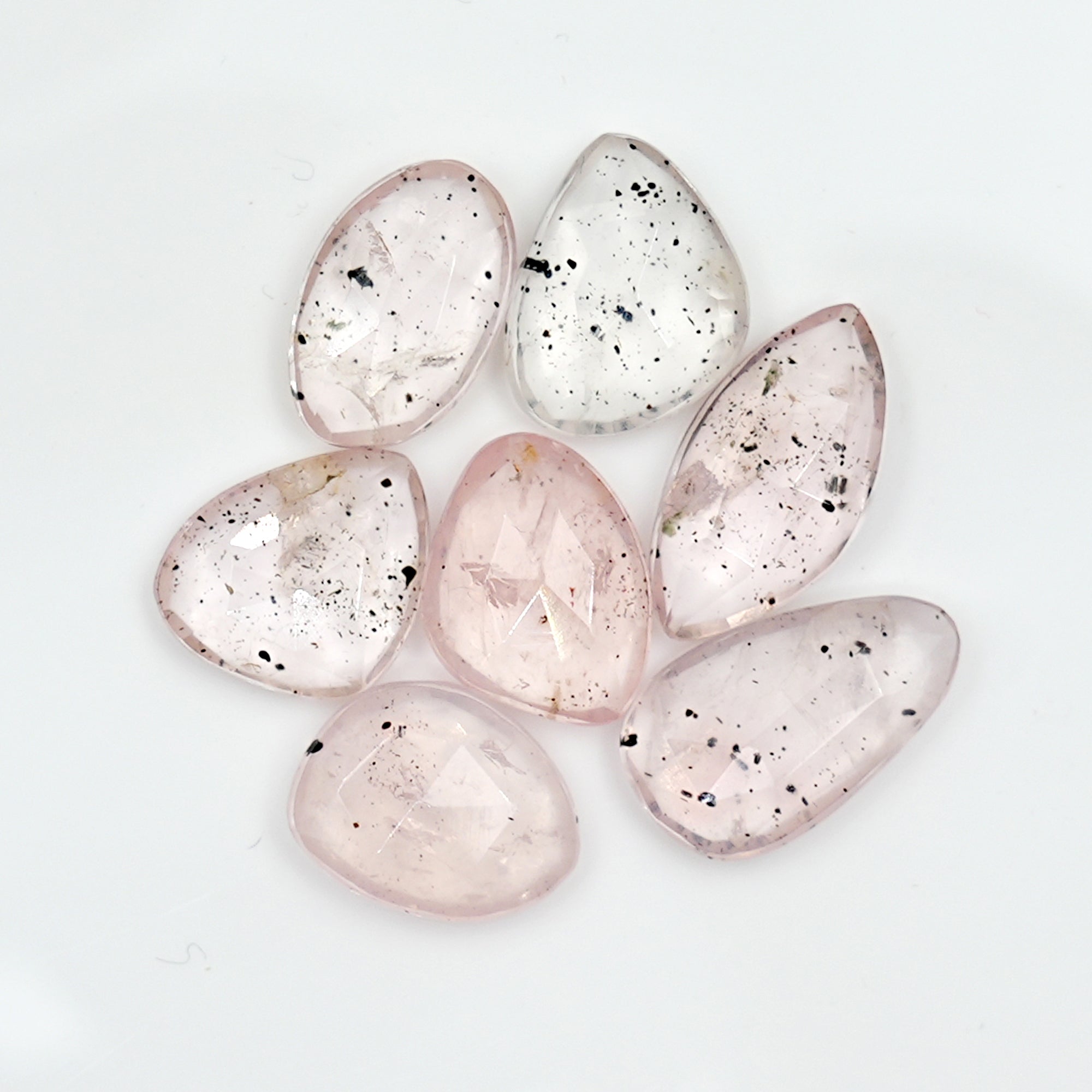 Bring a touch of whimsy and rarity to your jewelry designs with these Pink Dot Rutile Rosecut, featuring natural blush-toned inclusions that appear like scattered celestial sparks. Each piece is a mix treasure, perfect for artisanal settings and gemstone collectors.