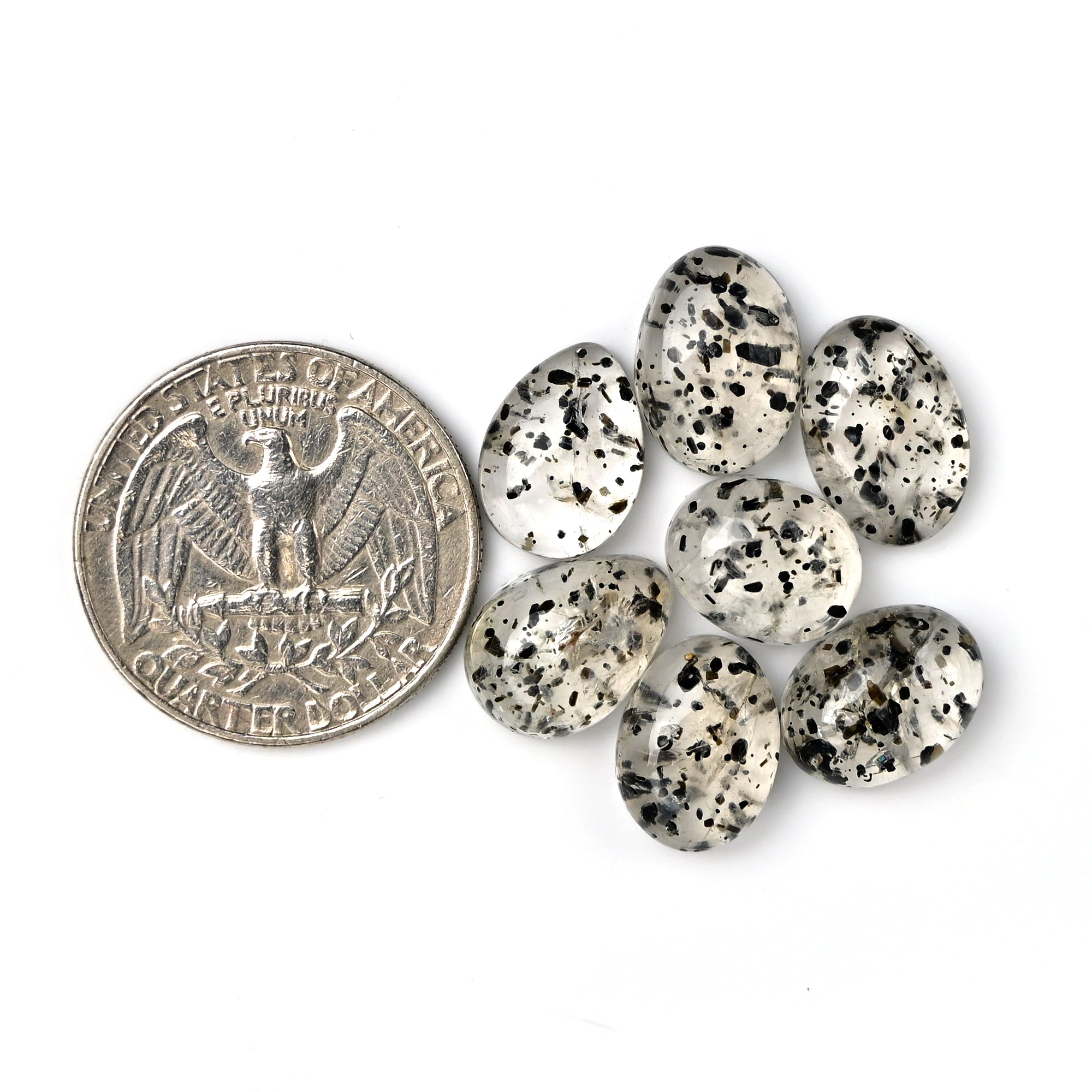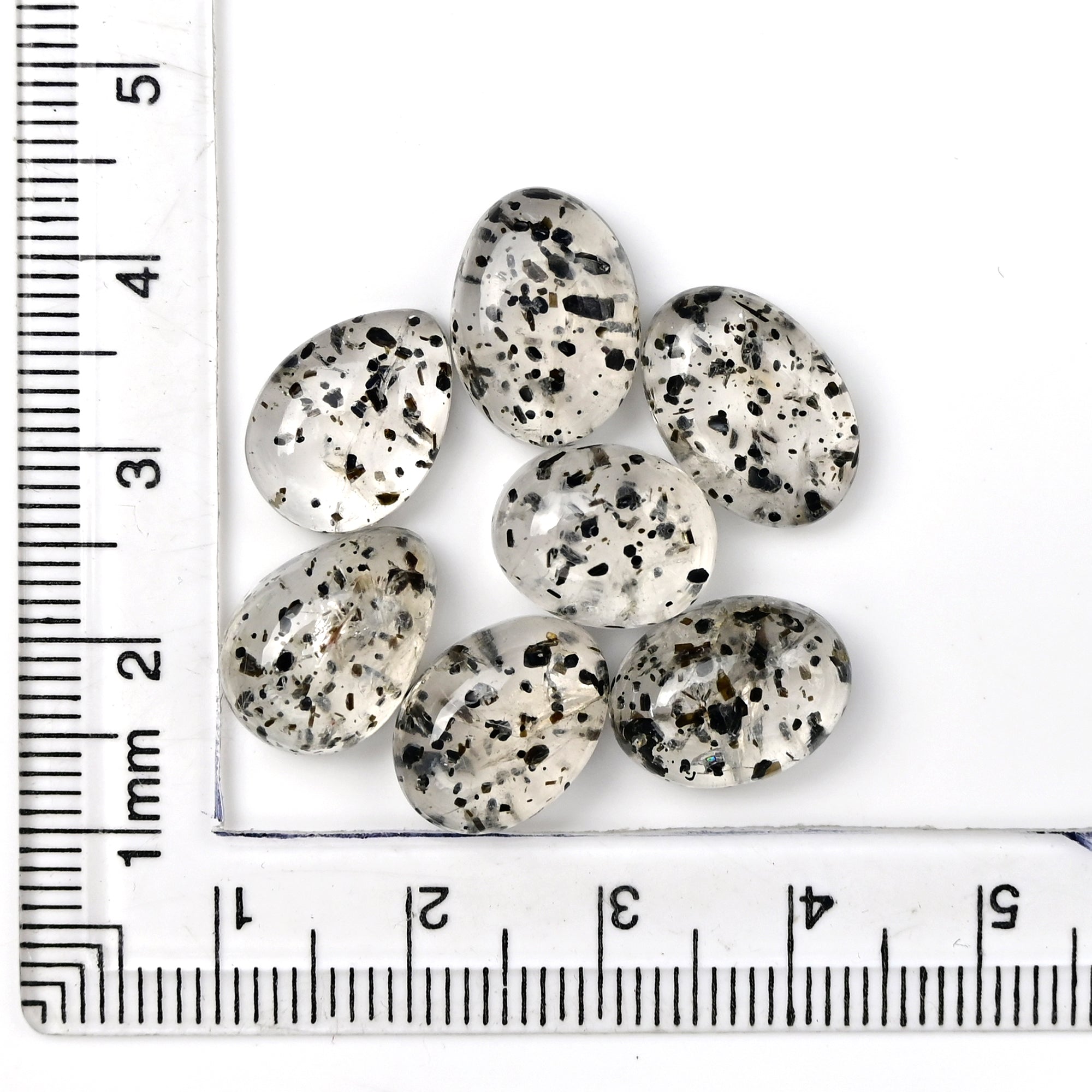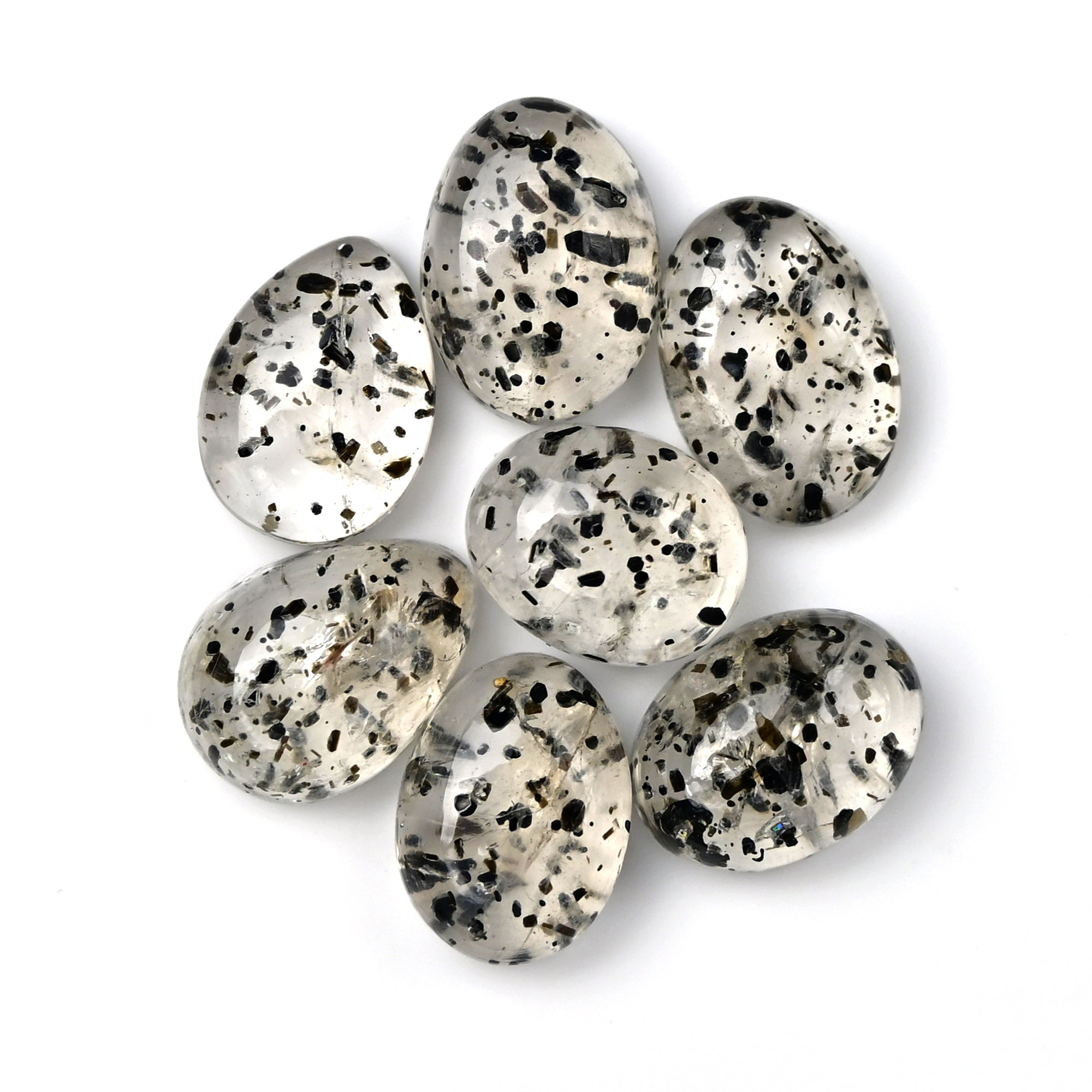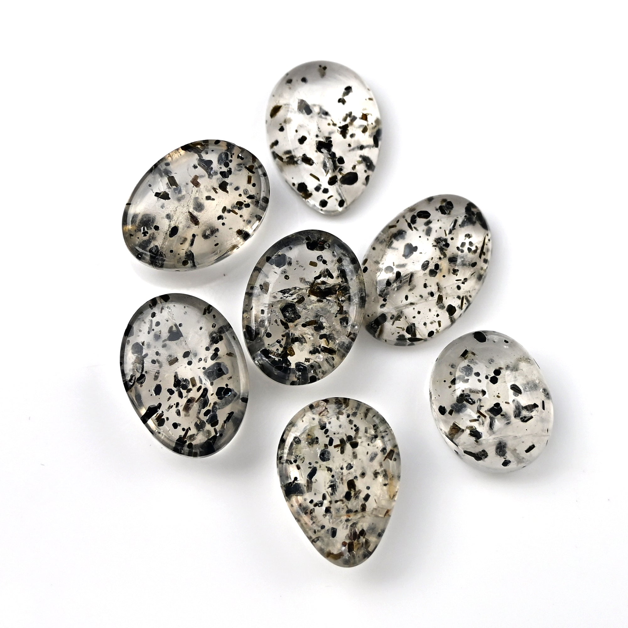 Bring a touch of whimsy and rarity to your jewelry designs with these Black Dot Rutile Cabochons, featuring natural blush-toned inclusions that appear like scattered celestial sparks. Each piece is a mix treasure, perfect for artisanal settings and gemstone collectors.