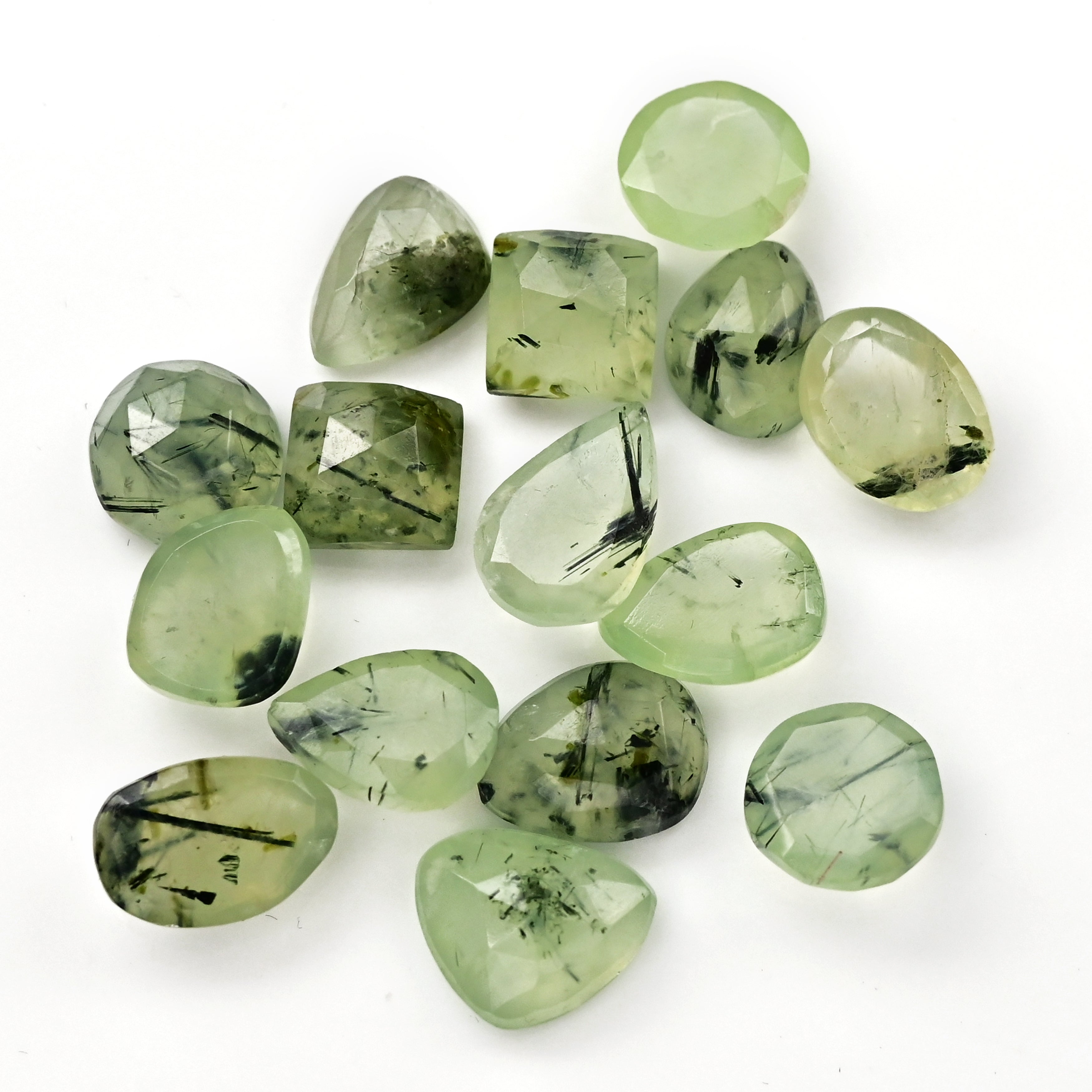 Explore the soothing beauty of Prehnite Rosecut Cabochons, these soft green gemstones feature a translucent glow with natural inclusions, perfect for adding a serene, earthy vibe to your jewelry designs.