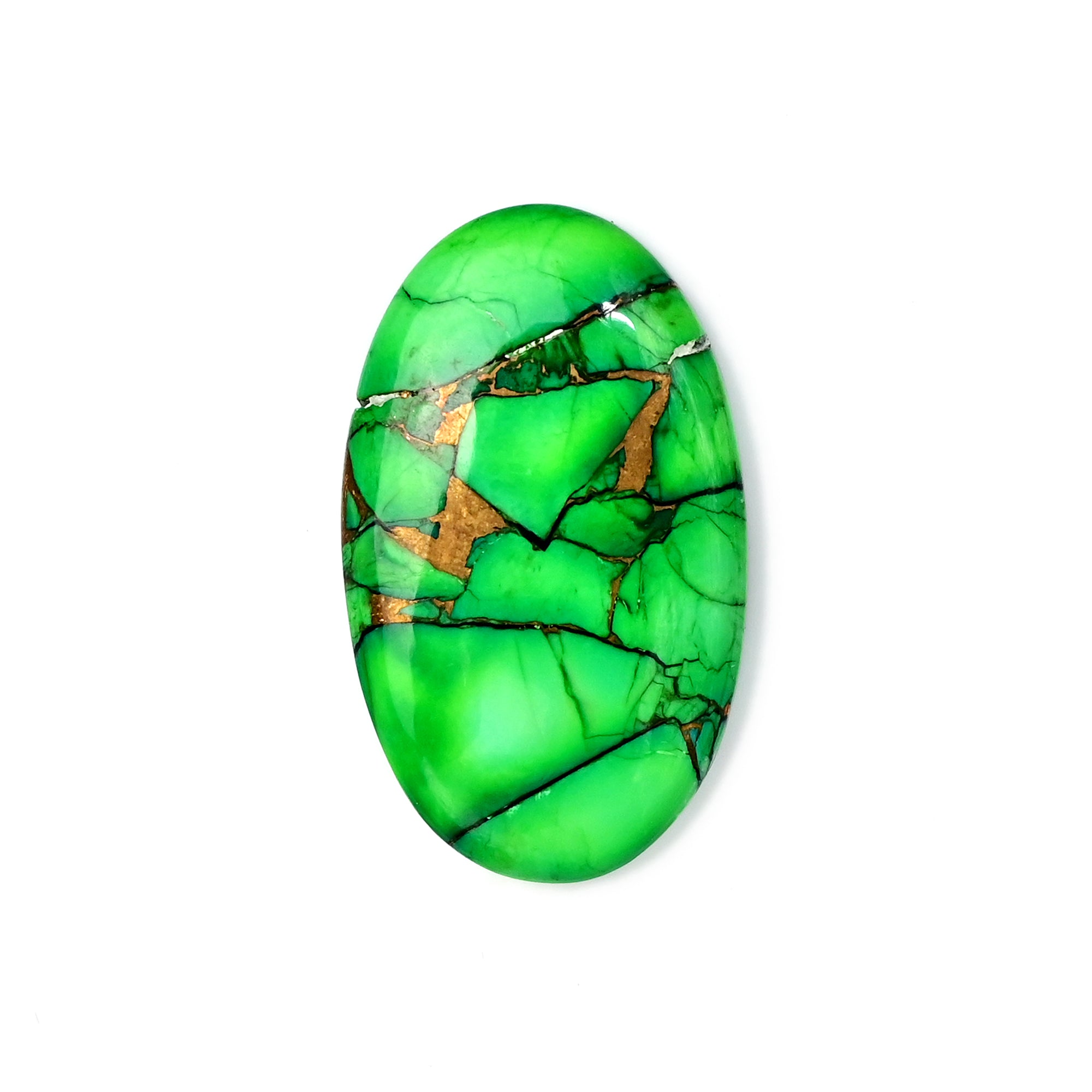 These Kingman Green Dahlia Turquoise Cabochons are a vibrant fusion of Violet, coppery gold, and bold turquoise veins. The Mohave turquoise matrix with copper highlights makes them especially popular for bohemian, southwestern, and statement jewelry.